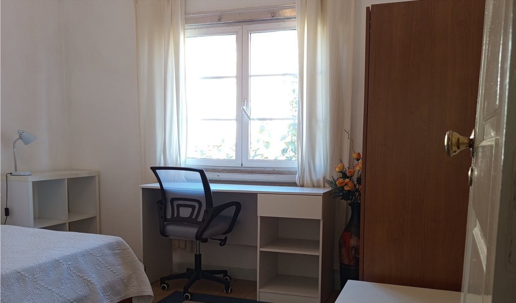 Dois quartos situados num excelente apartamento T3 com jardim, com boa exposição solar e ambiente confortável e tranquilo, na zona do Bairro de São Miguel, a 7 minutos de transportes públicos do Pólo 1.