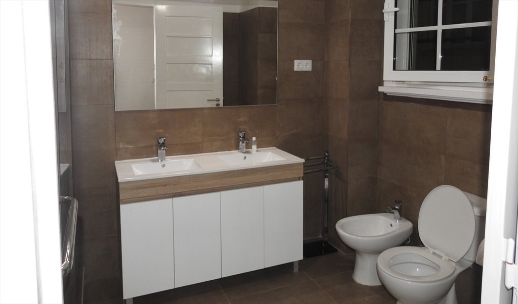 A sala de estar tem televisão com box e a cozinha está totalmente equipada, incluindo com 2 frigoríficos. Existe uma marquise com máquina de lavar roupa, tábua e ferro de engomar. Existem 2 casas de banho completas e ambas com janelas.