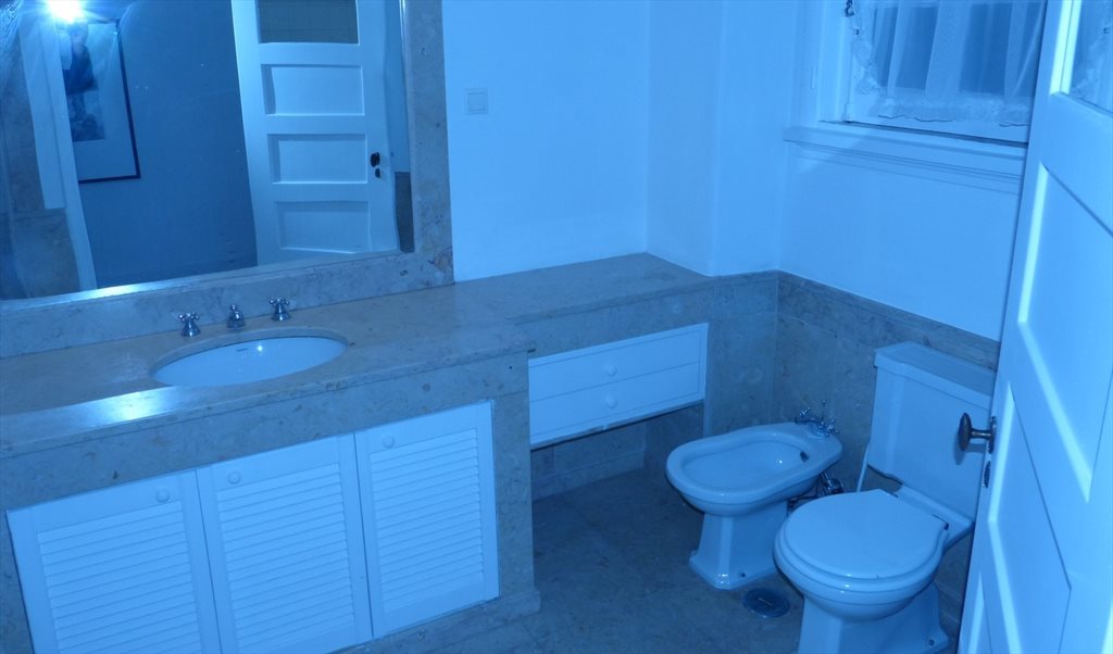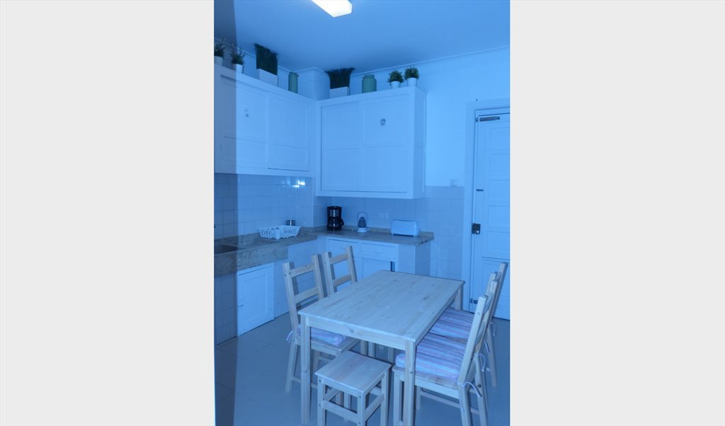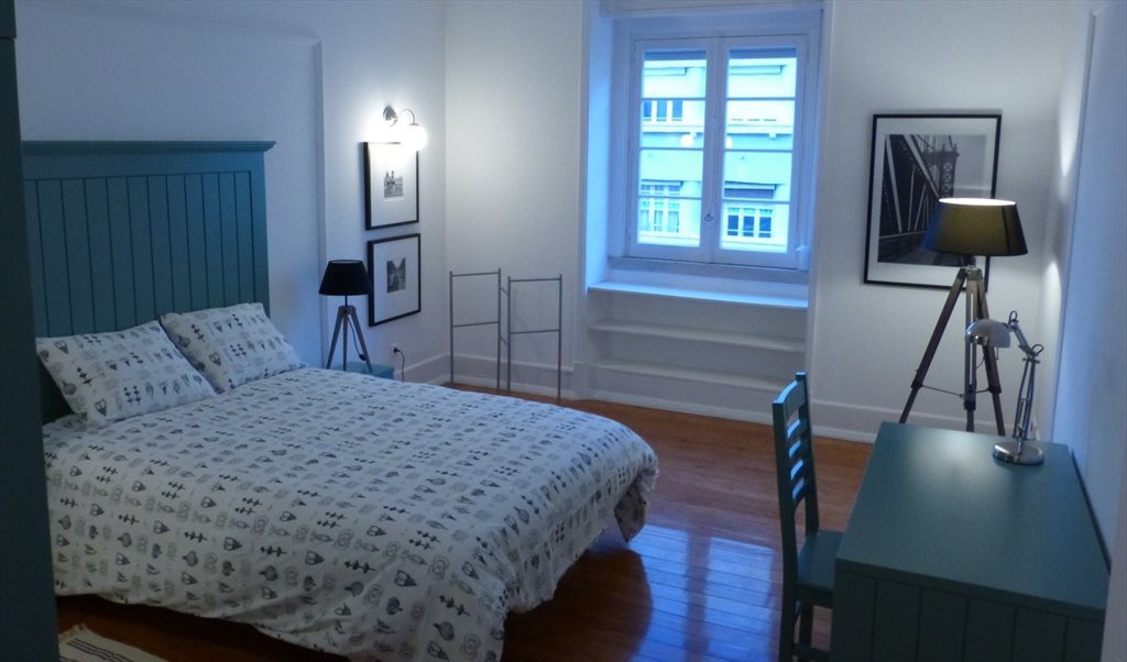 O apartamento de 210m2 é composto por 6 quartos, 4 com camas de casal e 2 com camas individuais, todos com janelas e equipados com aquecimento central, mesas de cabeceira, secretárias, cadeiras e roupeiro.