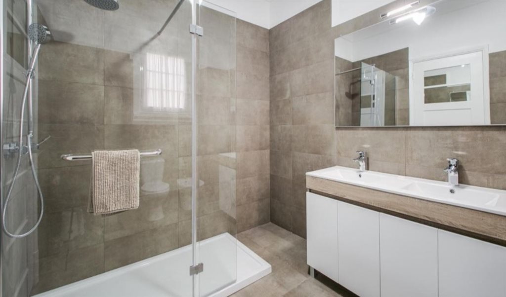 A sala de estar tem televisão com box e a cozinha está totalmente equipada, incluindo com 2 frigoríficos. Existe uma marquise com máquina de lavar roupa, tábua e ferro de engomar. Existem 2 casas de banho completas e ambas com janelas.
