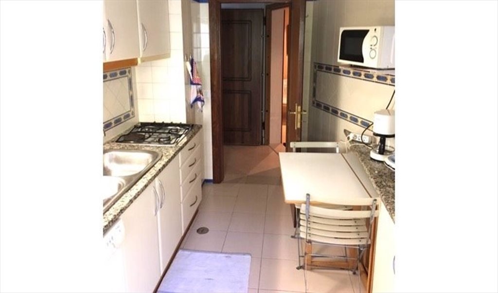 It has 2 rooms, 1 bathroom, fully equipped kitchen, big living room with TV, sofa and dining table and also a balcony.