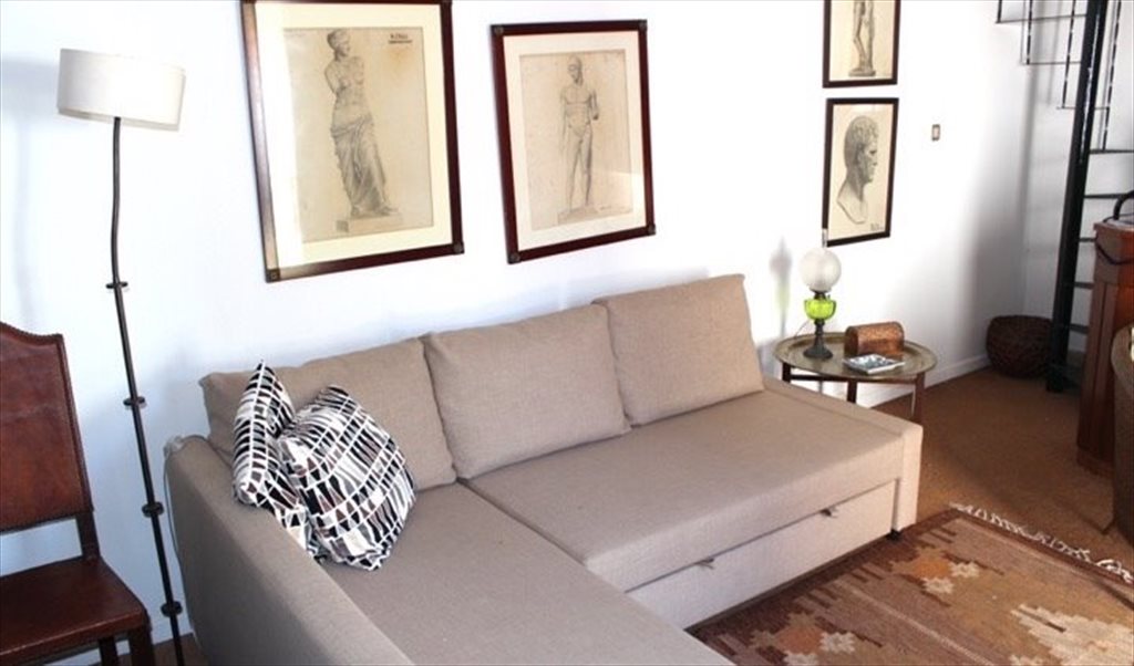 In the bottom floor there's the living room and kitchen, in the upper floor there's the room with double bed and bathroom.