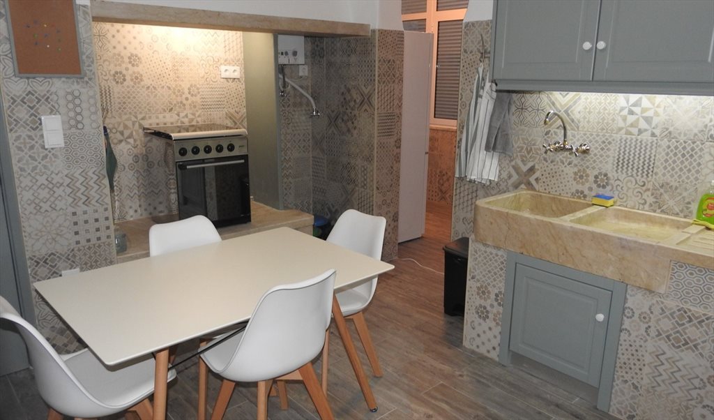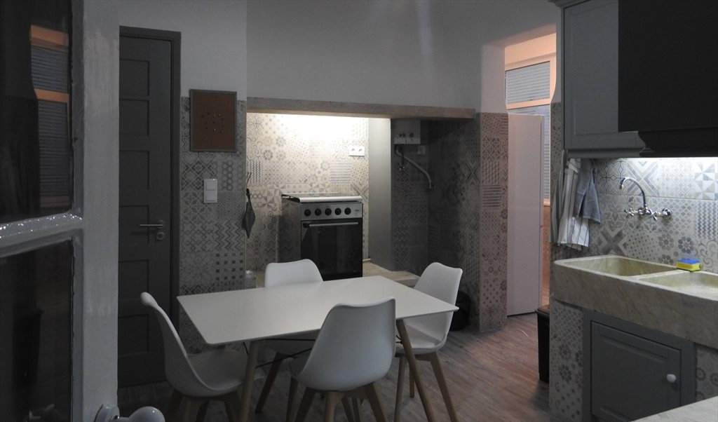 O apartamento de 210m2 com janelas de vidro duplo é composto por 6 quartos, 4 com camas de casal e 2 com camas individuais, todos com janelas e equipados com aquecimento central, mesas de cabeceira, secretárias, cadeiras, cadeirão e roupeiro.