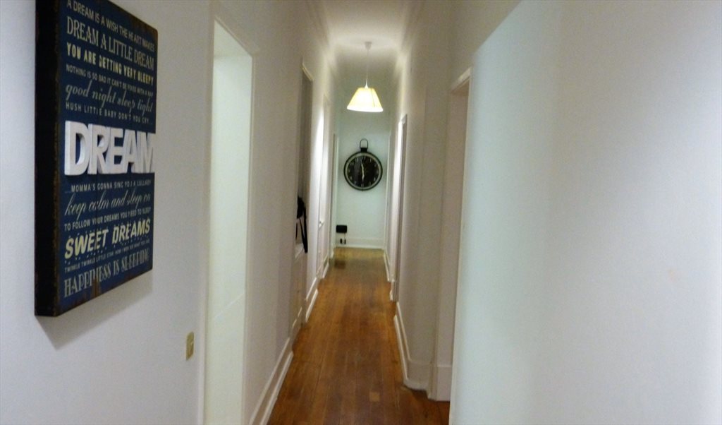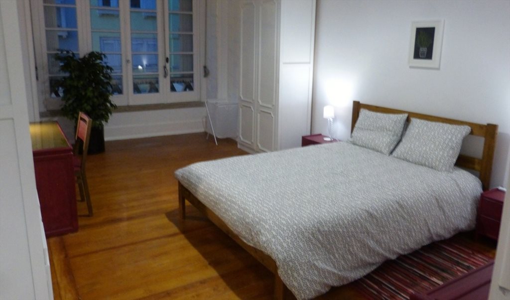O apartamento de 210m2 é composto por 6 quartos, 4 com camas de casal e 2 com camas individuais, todos com janelas e mobilados (cama dupla, mesas de cabeceira, secretárias, cadeiras e roupeiro).