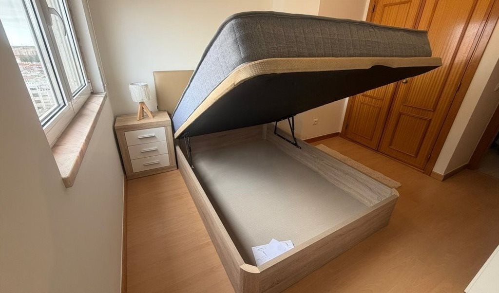 Cama de casal com sommier (para excelente arrumação extra) e colchão de alta qualidade.