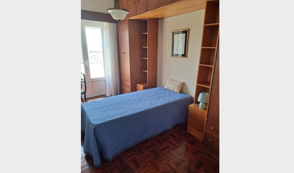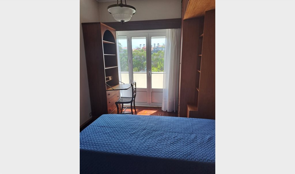 Quarto individual espaçoso e mobilado com acesso a varanda privativa inserido num apartamento T2 com muita luz natural num 4º andar de um prédio com dois elevadores.