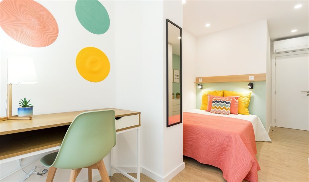 O quarto está totalmente equipados com AC, TV e mobília nova (cama de casal, roupeiro, cómoda, secretária e cadeira). Está ainda incluído o serviço de TV e internet, bem como a limpeza semanal das áreas comuns. Ao valor da renda, acresce 50€ para despesas mensais por pessoa. O senhorio não habita no apartamento.