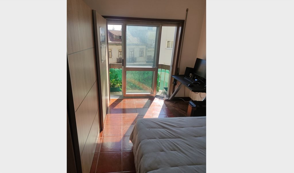 Quarto individual, amplo e muito luminoso, mobilado com cama de casal, roupeiro e cómoda, oferecendo conforto e excelente espaço de arrumação. Dispõe de uma varanda grande, com ótima exposição solar e vista para a frente do prédio.