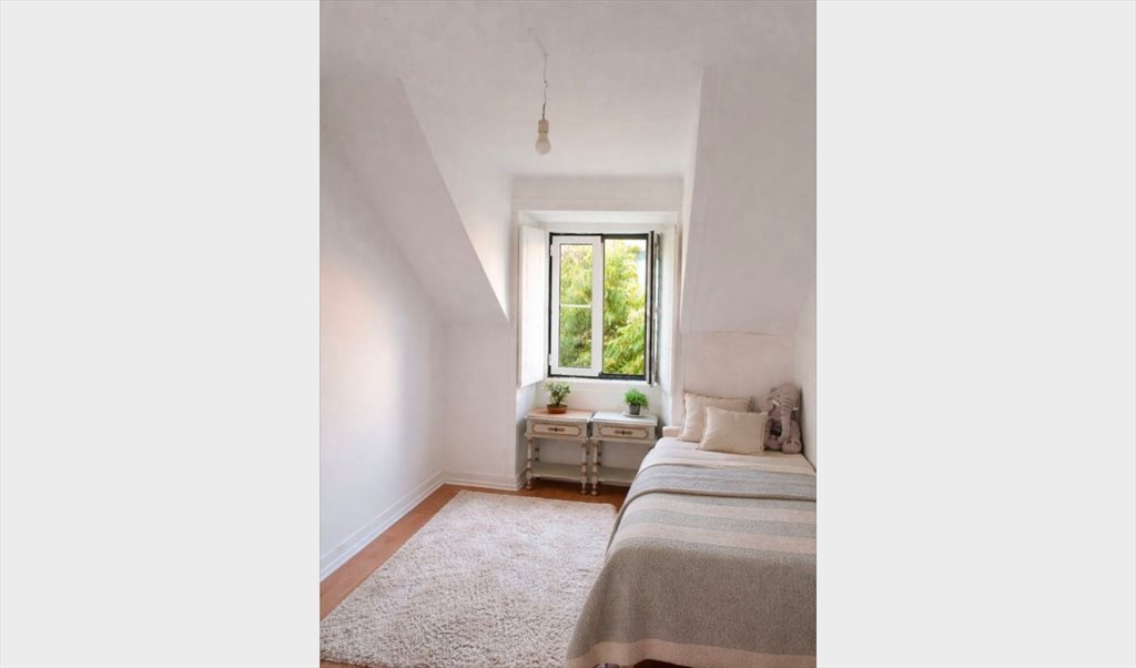 O quarto é pequeno, muito acolhedor e luminoso. Todas as janelas do apartamento têm uma vista magnífica sobre as paisagens de Sintra.